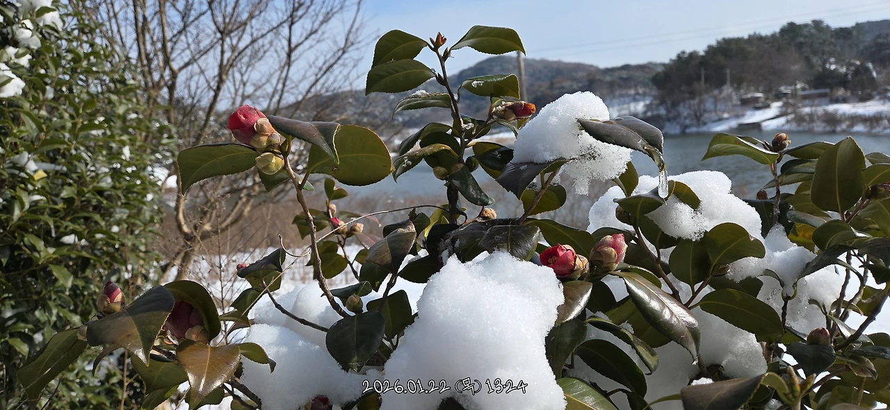 겨울이 아름다운 건 하얀 설국과 빨간 산수화열매와 동백꽃이 있기 때문이었어요.