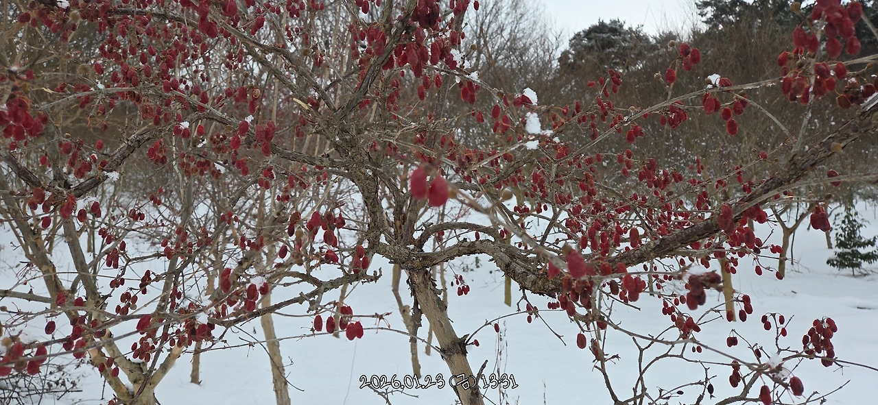 설국의 세상에 빨갛게 익은 열매가 있다는 것만도 자랑거리가 되었어요.