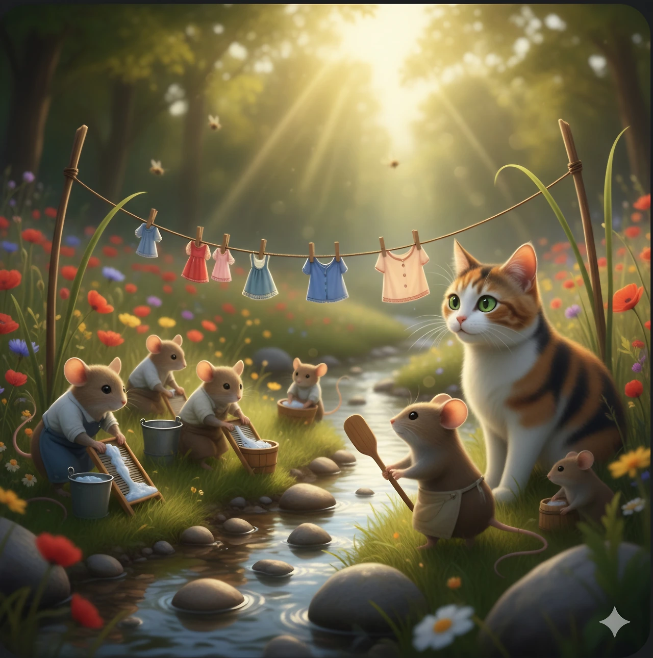 개울가에서 빨래하는 생쥐를 보고 싶었어요.