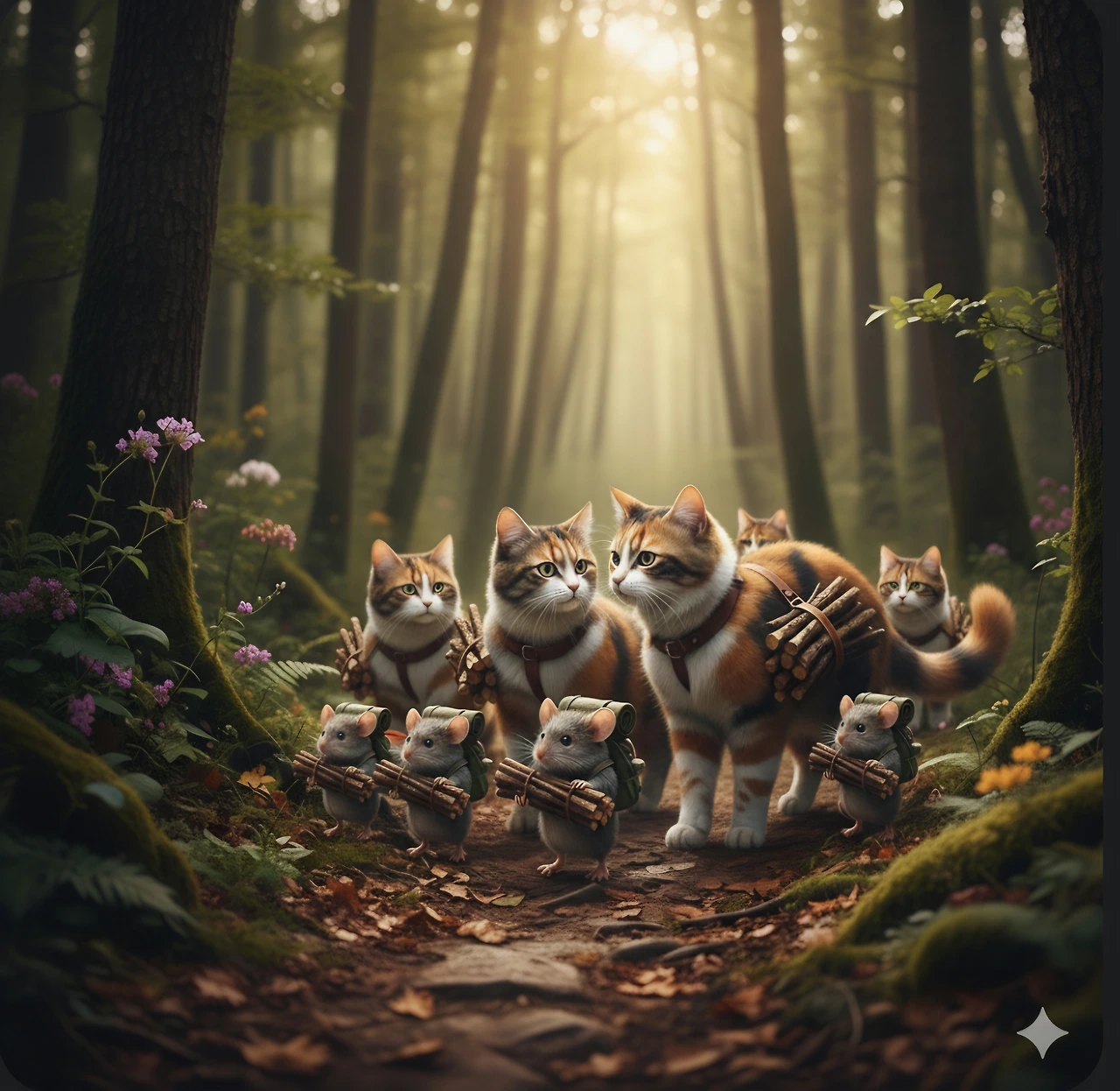 생쥐와 고양이들은 말없이 장작을 놓고 돌아갔어요.