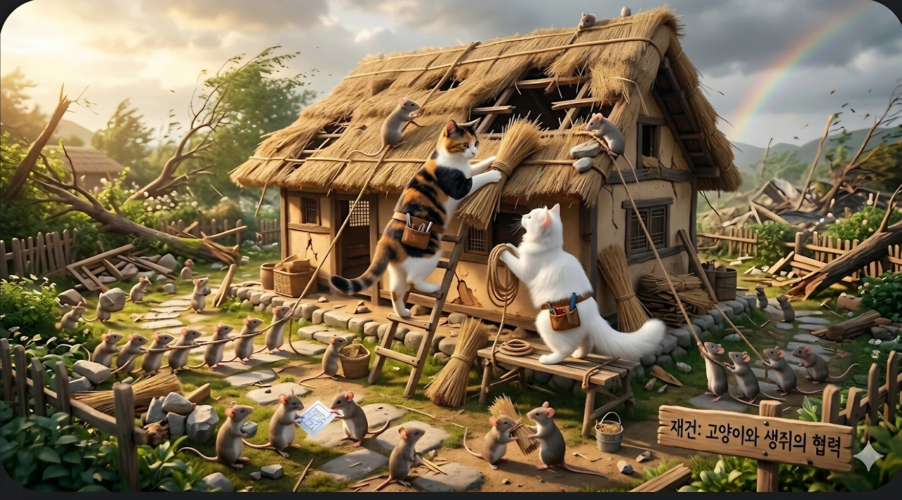 생쥐와 고양이들이 집을 수리해 주다니.