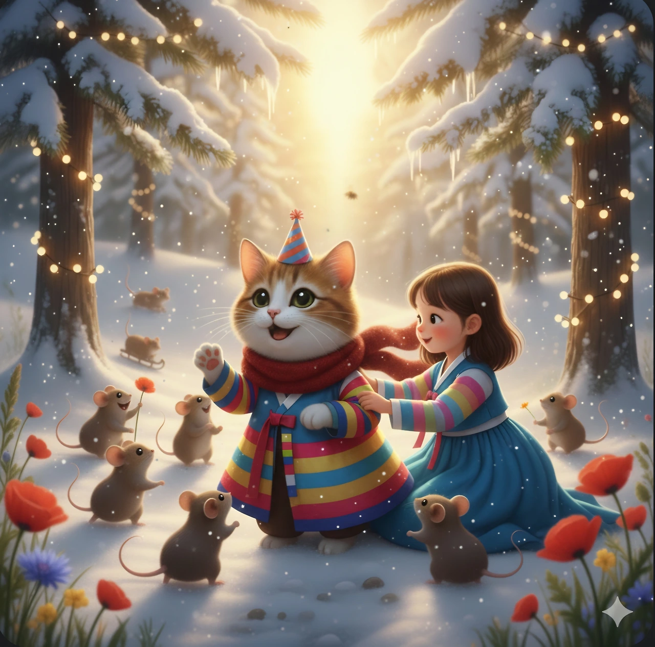 말썽꾸러기 고양이 꾸꾸에게 생쥐들이 물었어요.