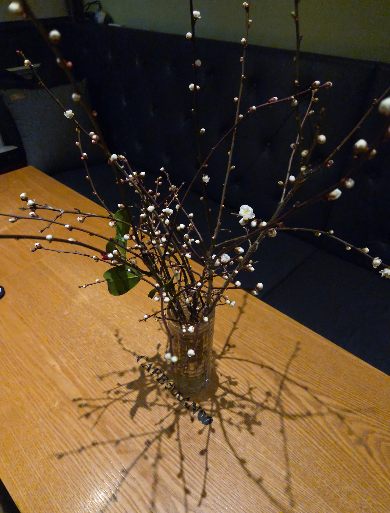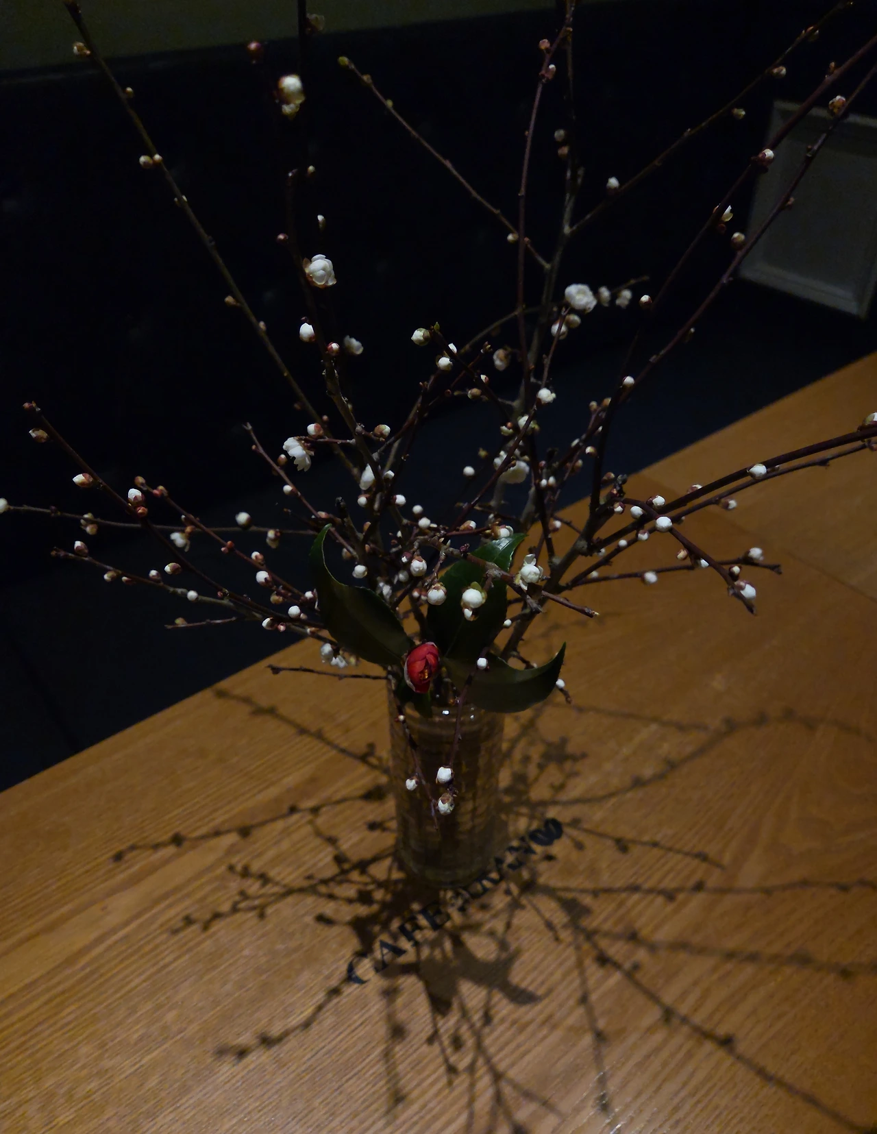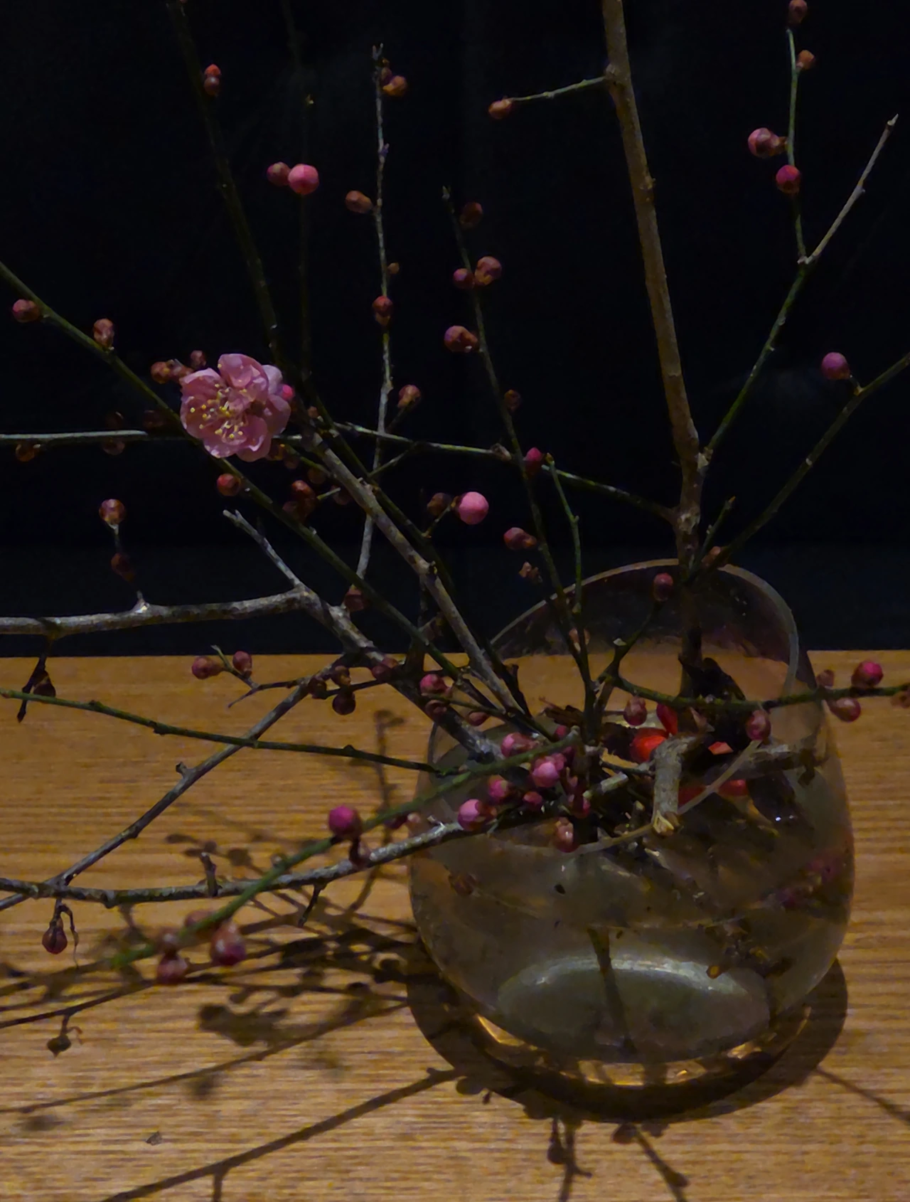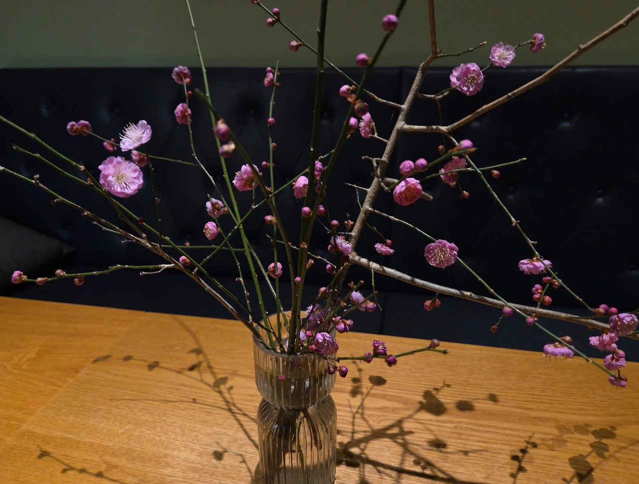 테이블에 놓인 매화를 보고 단골손님이 한 마디 했다.