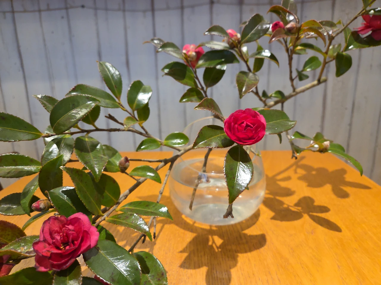 꽃병을 이리저리 돌리며 동백꽃을 감상하며 말했다.