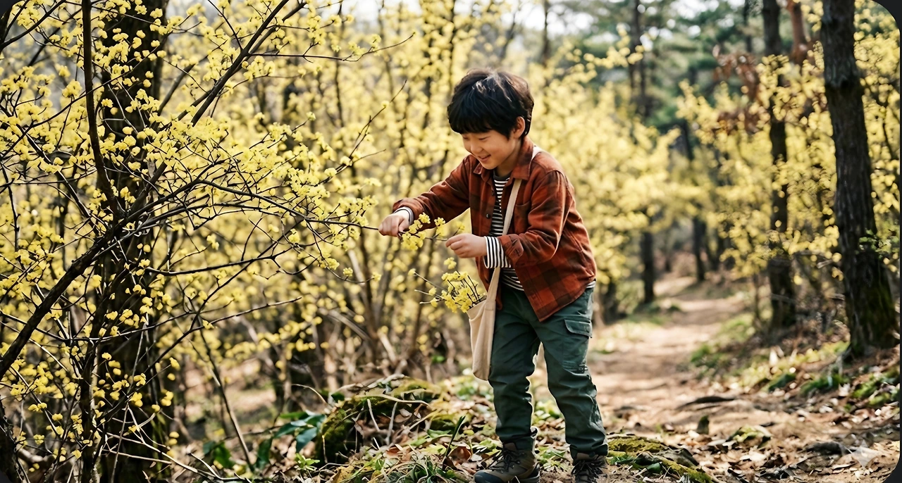 송화와 같이 산수유를 찾으러 숲으로 갔어요.