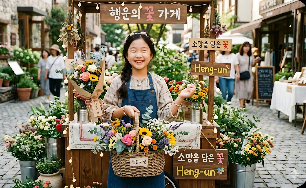 재래시장 모퉁이에 있는 동준의 꽃가게에 꽃을 배달할 때가 많았어요.