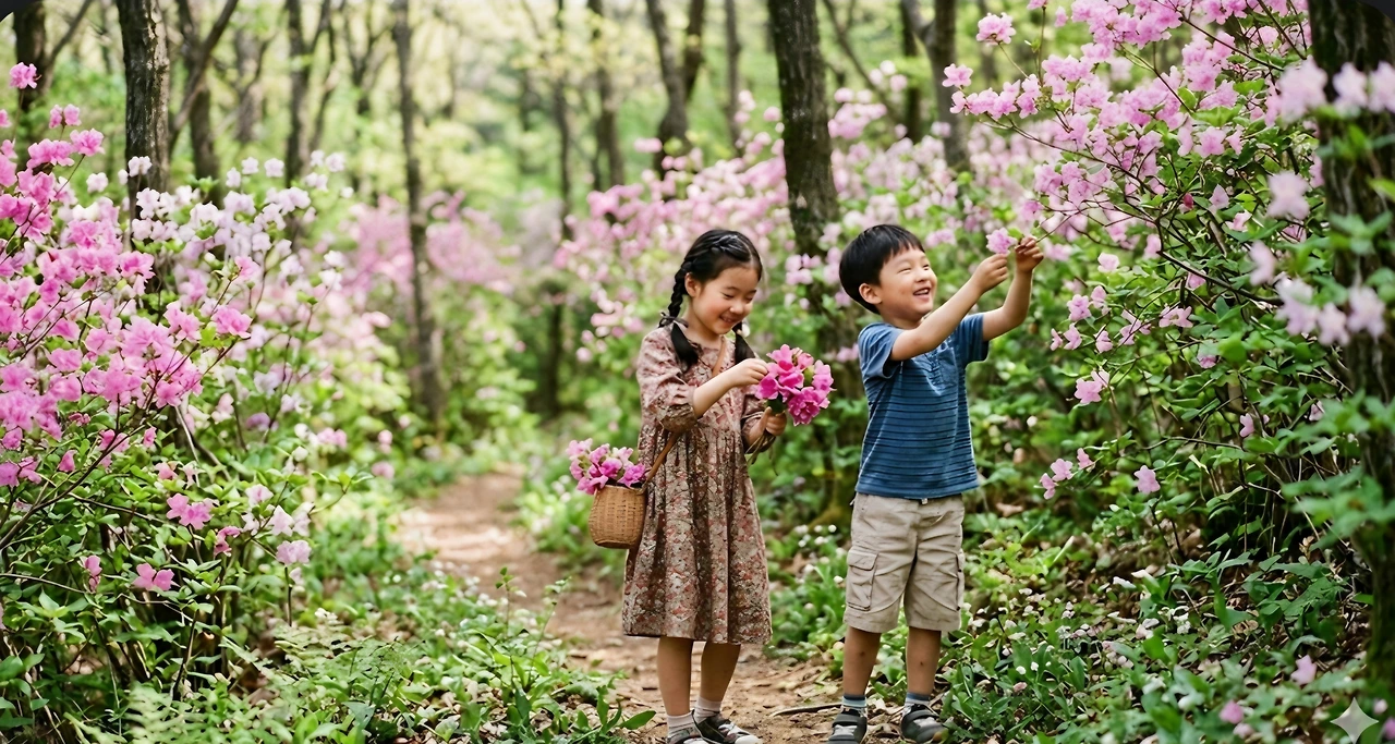 진달래는 숲에 많이 피지만 철쭉은 도시 정원에 많이 피는 꽃이라는 것도 알았어요.