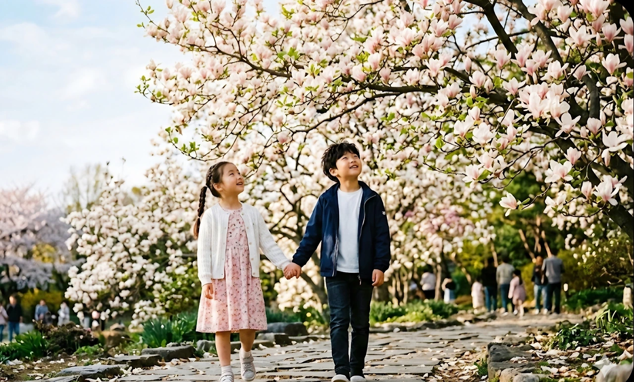 목련이 활짝 핀 공원에는 목련꽃 눈이 내렸어요.
