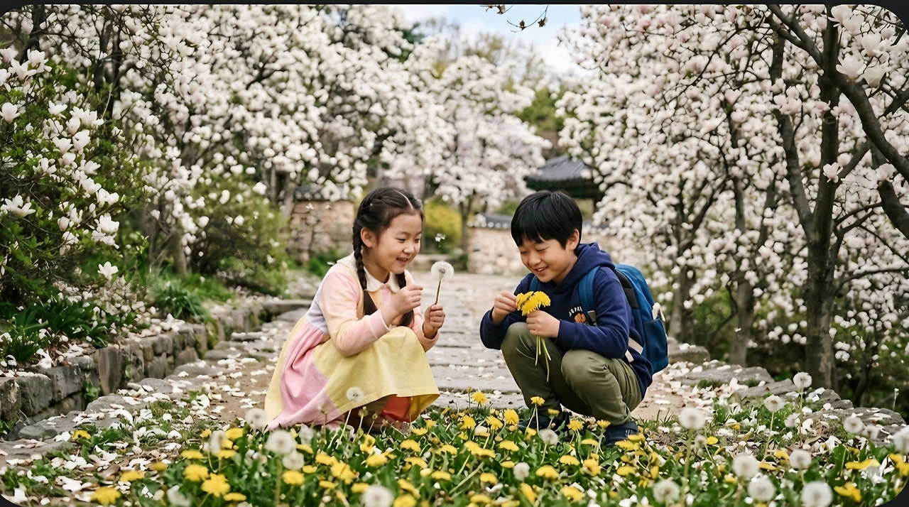 하고 말한 동준이 송화가 들고 있는 민들레 씨앗을 향해 입으로 호호하며 불었어요.