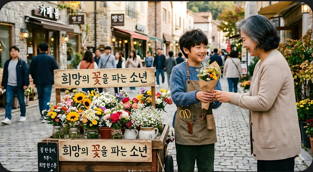 동준은 아름다운 꽃을 파는 것보다 희망을 팔고 있었어요.