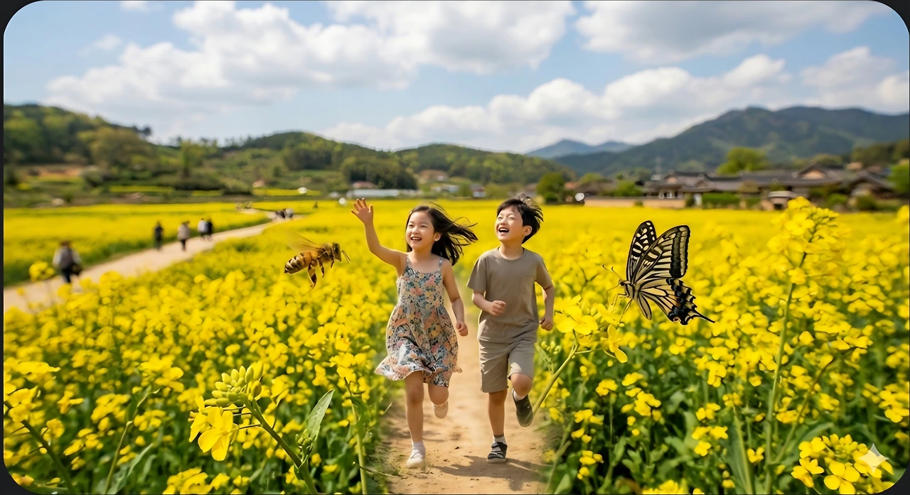 동준은 이웃마을에 유채꽃밭으로 놀러 갔어요.
