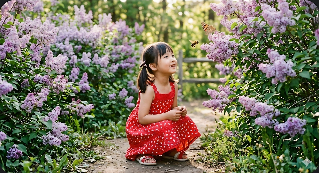 나일락 꽃밭에 가 꽃향기를 맡으며 놀았어요.