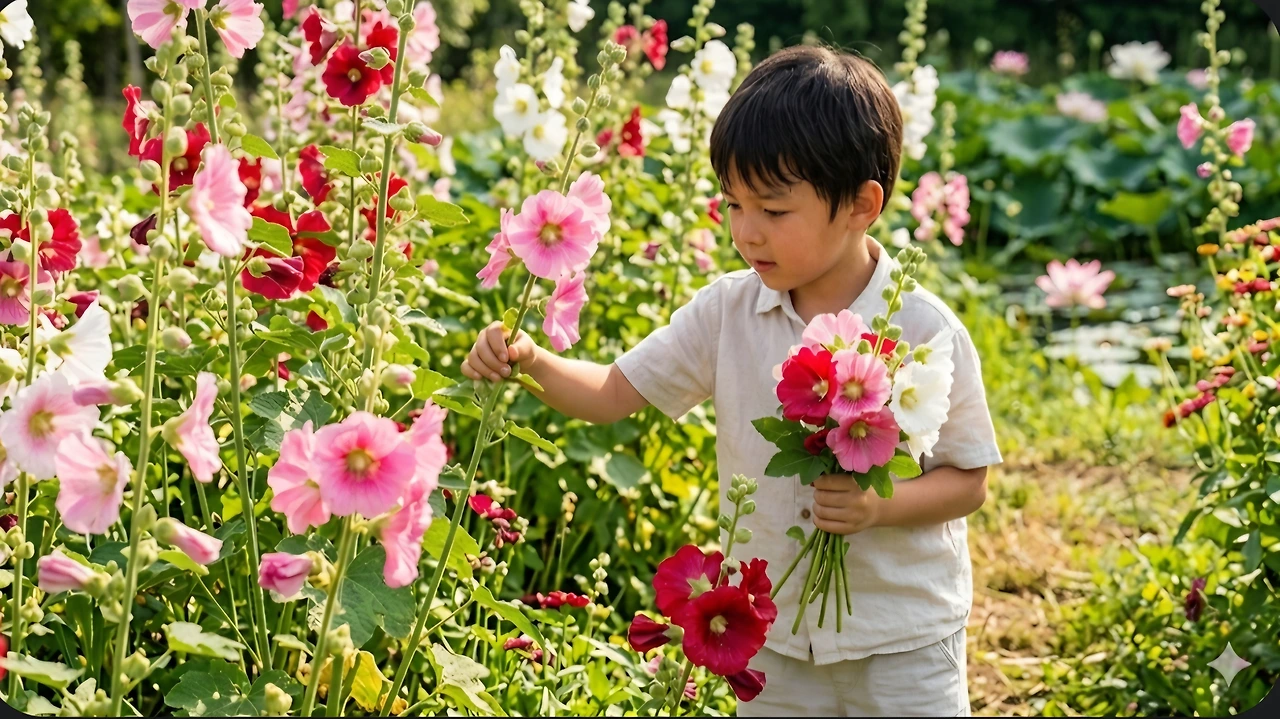 접시꽃으로 꽃다발을 만들어 줄래."