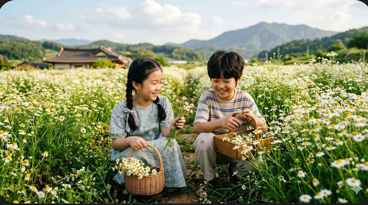 동준은 할머니 이야기를 듣고 캐모마일 꽃에 대해 알아봤어요.