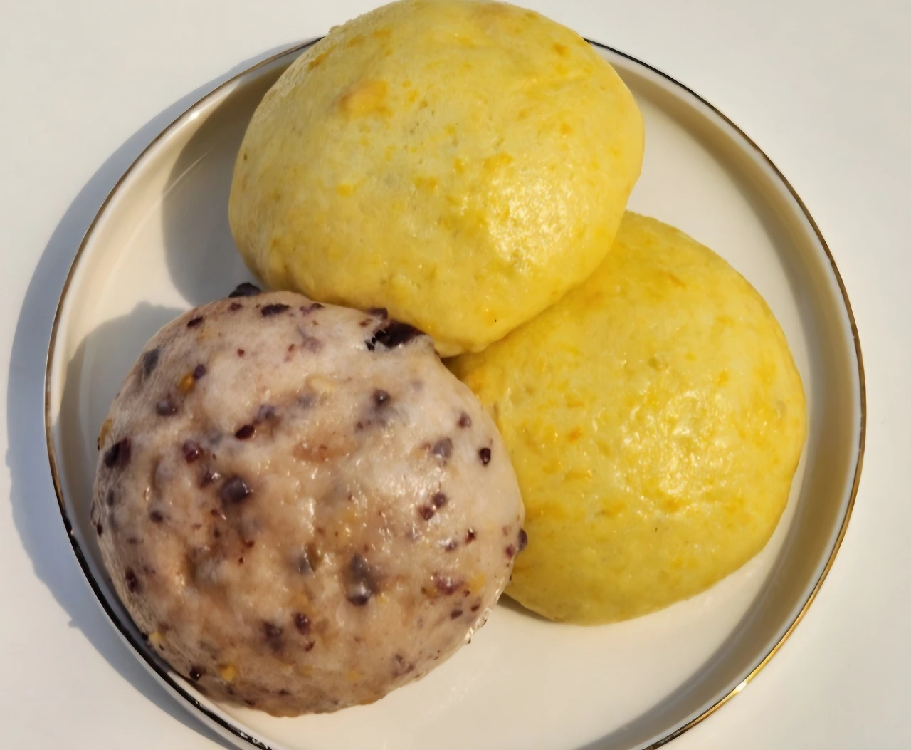 막걸리와 단호박이 들어간 찐빵은 달콤하고 맛있었어요.