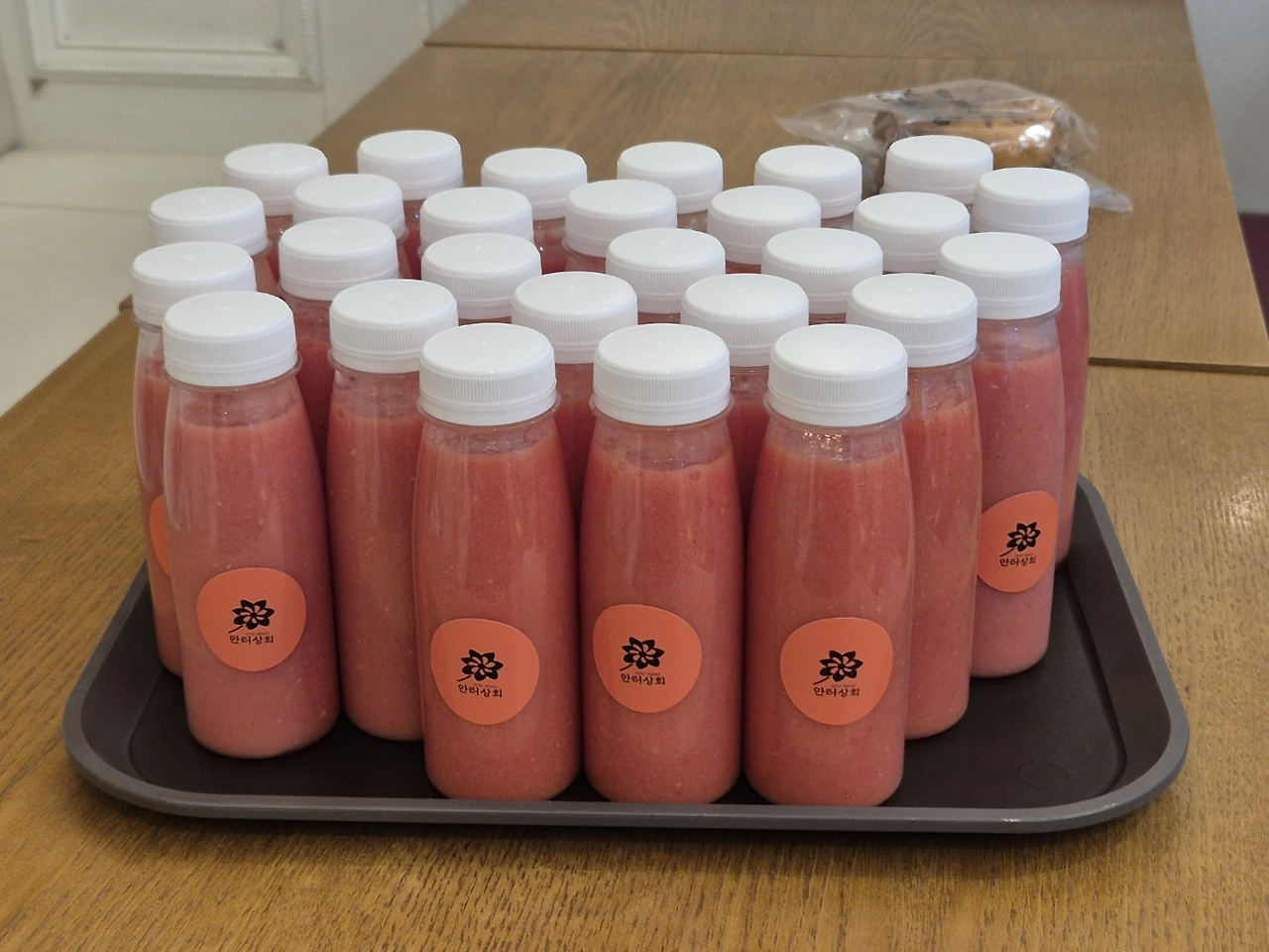"오늘은 주스를 이십 잔 만들어야 해.