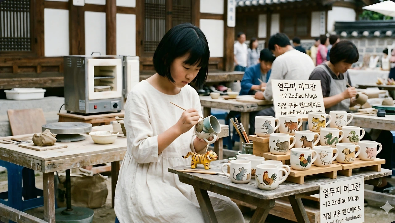 머그잔에 열두 띠 동물이 그려지는 모습이 떠올랐어요.