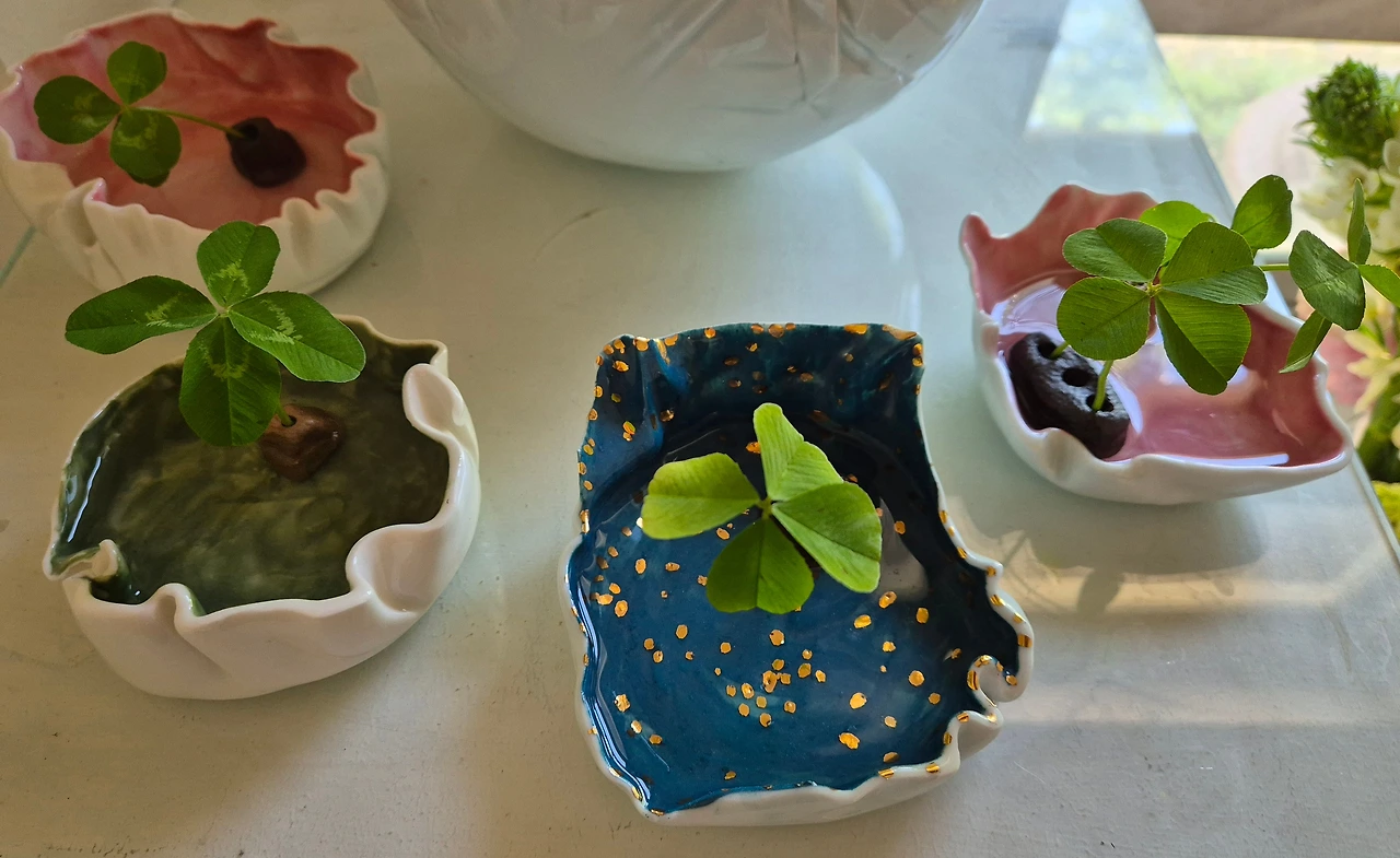 미미는 네 잎 토끼풀을 작은 화분에 꽂아 주며 물을 부었다.