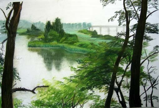 호수에 뛰어들자마자 새까만 청개구리는 사라지고 녹색 청개구리가 되었다.