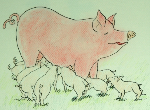 가지 나무는 돼지새끼들을 잘 키웠어요.
