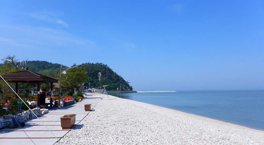 송이도 몽돌 해변에는
