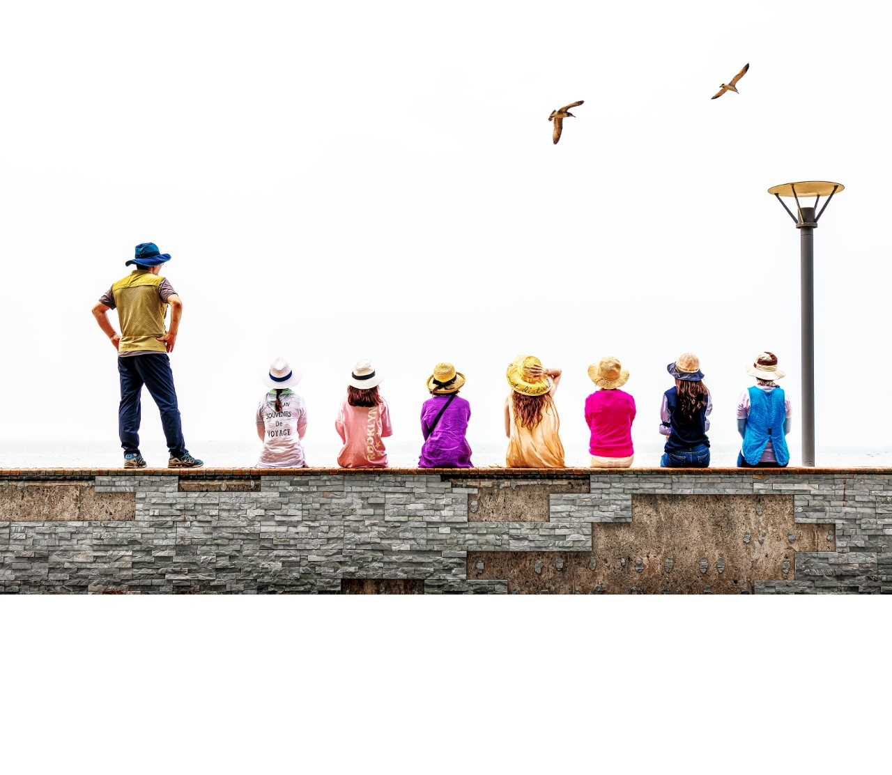 갈매기와 여덟 명의 모습을 카메라에 담고 싶었다.