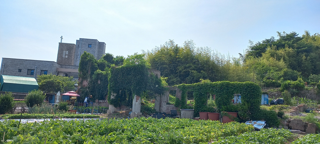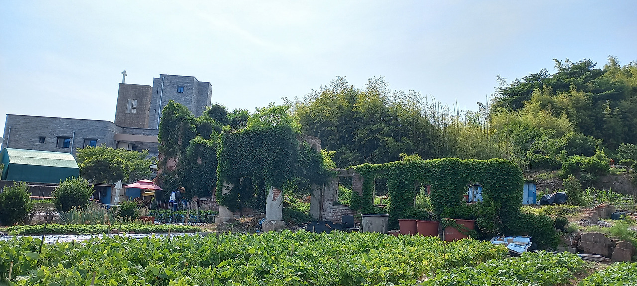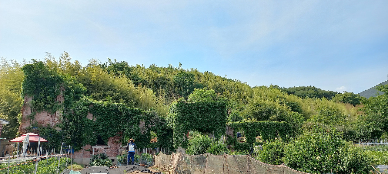담쟁이넝쿨에 접근하려면 아저씨 텃밭을 통과해야 했다.