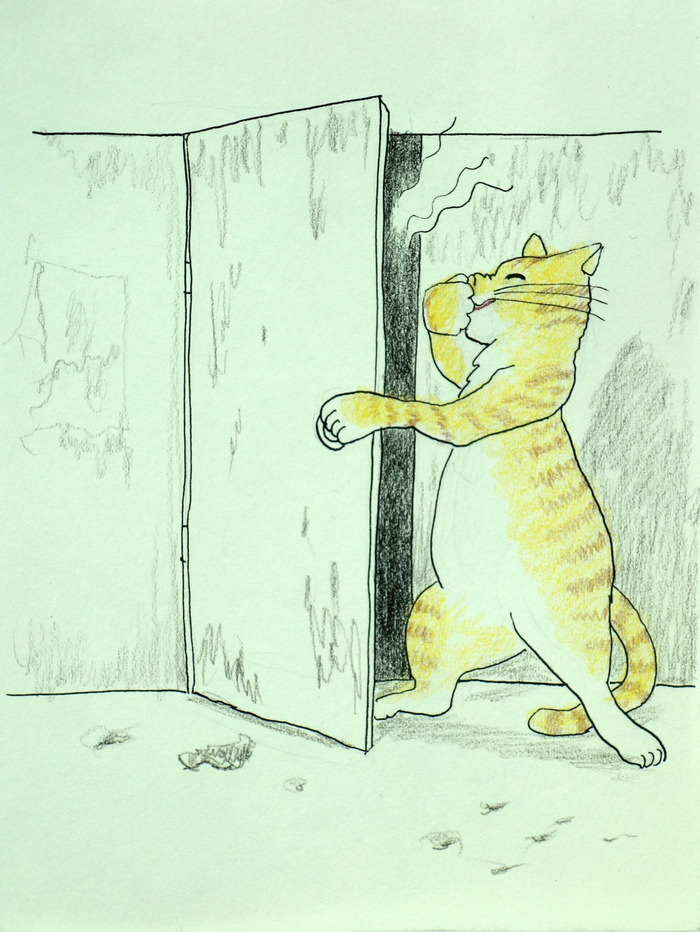 코를 막고 큰 용기를 낸 맷돌은 천천히 걸레 집 문을 열었다.
