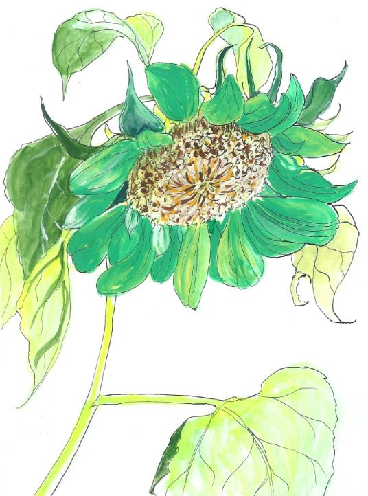 쇠똥구리는 초록 해바라기 꽃을 보고 놀랐다.