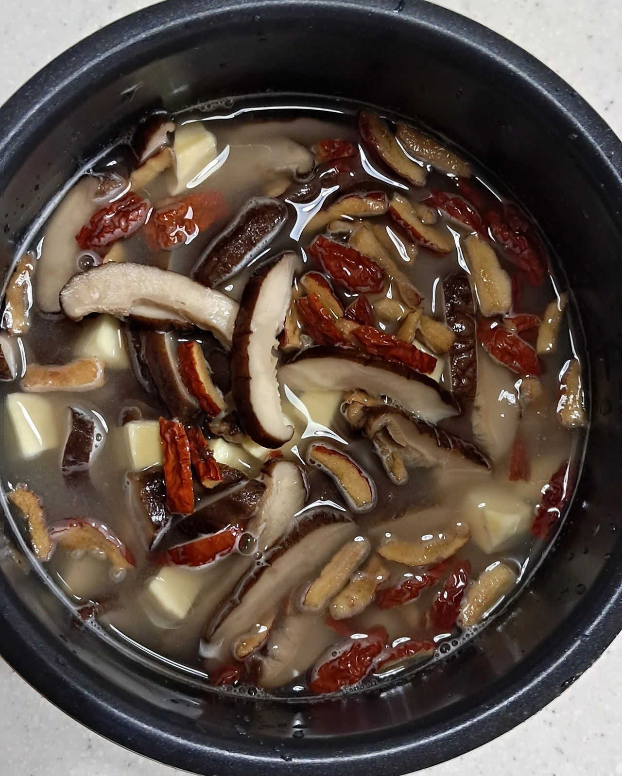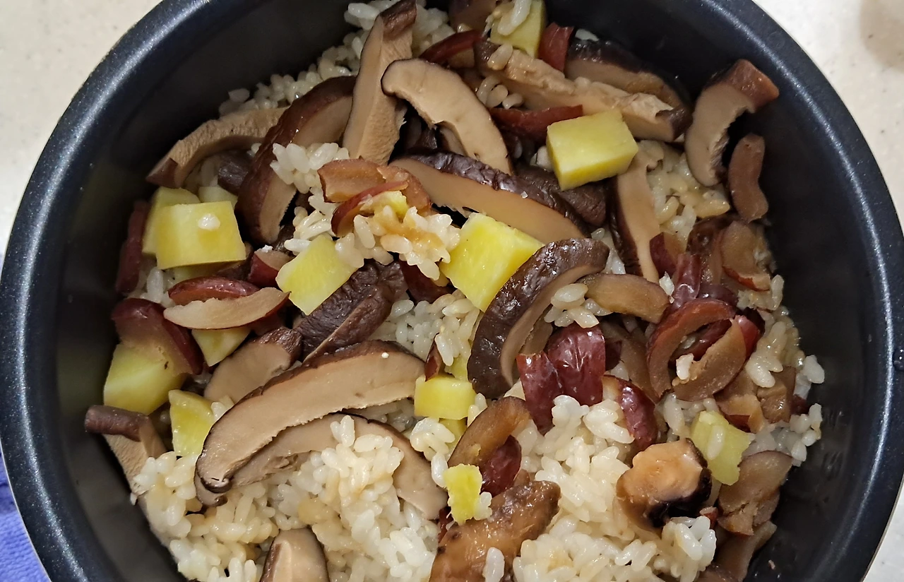 나는 밥솥을 열고 밥의 협주곡(대추&표고버섯&고구마)이 주는 향기에 흠뻑 취했다.