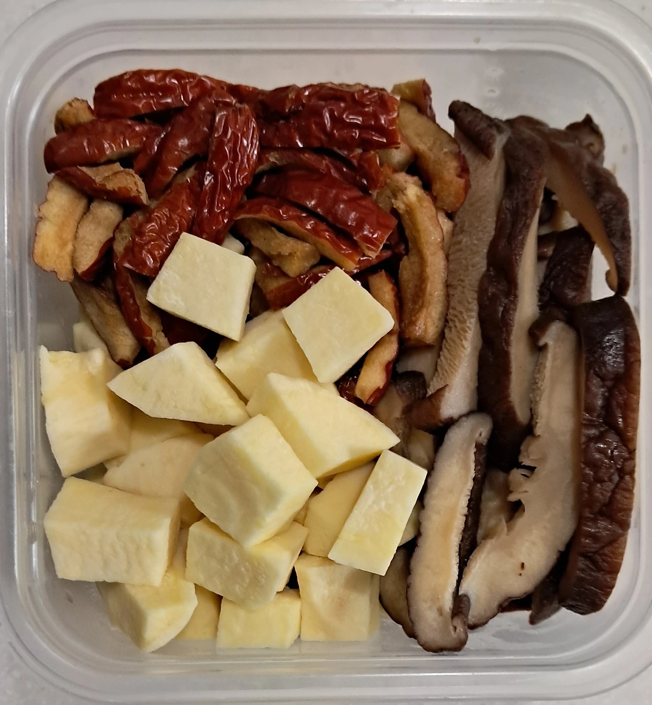 대추나 표고버섯은 자연 그대로 였지만 고구마는 껍질을 재거한 것이었다.