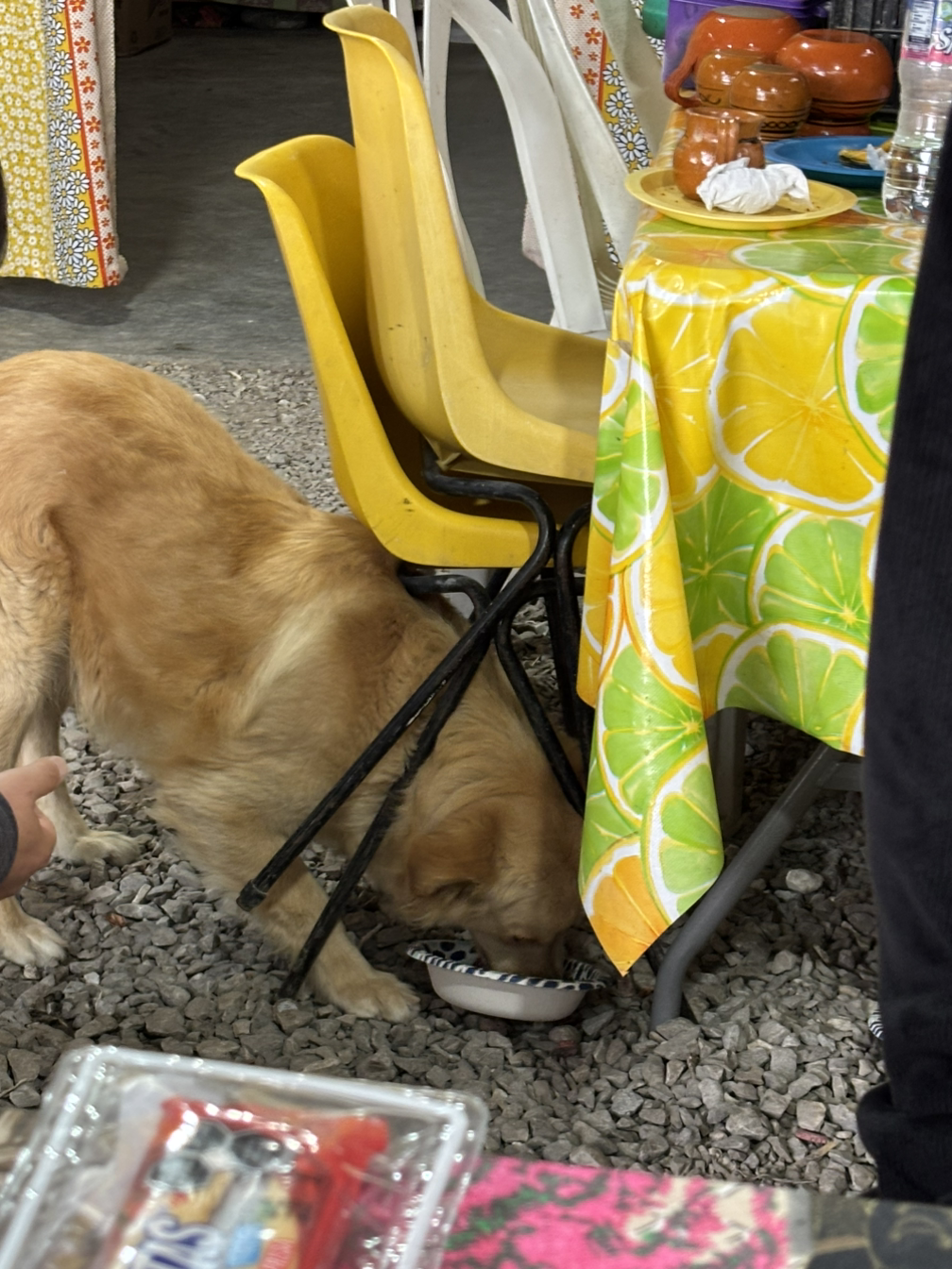 가이드님이 투어 때마다 늘 들르는 단골 식당은, 이제야 문을 열었는지 아직 냉기가 감돌았다. 가게 오픈 전 특유의 적막한 분위기 속에서, 직원분은 우리의 주문을 받기 위해 달그락달그락 분주하게 준비를 하시고 계셨다. 그동안 순딩이 개가 우리를 놀아주었는데, 눈이 너무 순하고 예뻤다. 여러 번 봐서 그런지 가이드님을 굉장히 잘 따랐는데, 나중에 식사 후 아쿠아슈즈를 사러 옆 가게에 가는 우리를 따라 마실 나올 정도였다.