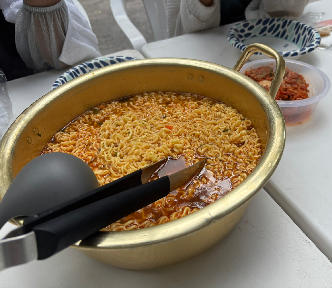 점심은 라면과 김치! 안타깝게도 진라면 순한 맛이었지만, 이곳에서 유일하게 따끈한 생명줄이었다. 하지만 날이 춥다 보니 금방 식어갔고, 국물을 연신 떠마셨지만 입술만 파래져갔다. 결국 이 날 먹은 라면 냄새가 다음날까지 속에서 사라지지 않아서, 아직까지 라면은 못 먹고 있다.