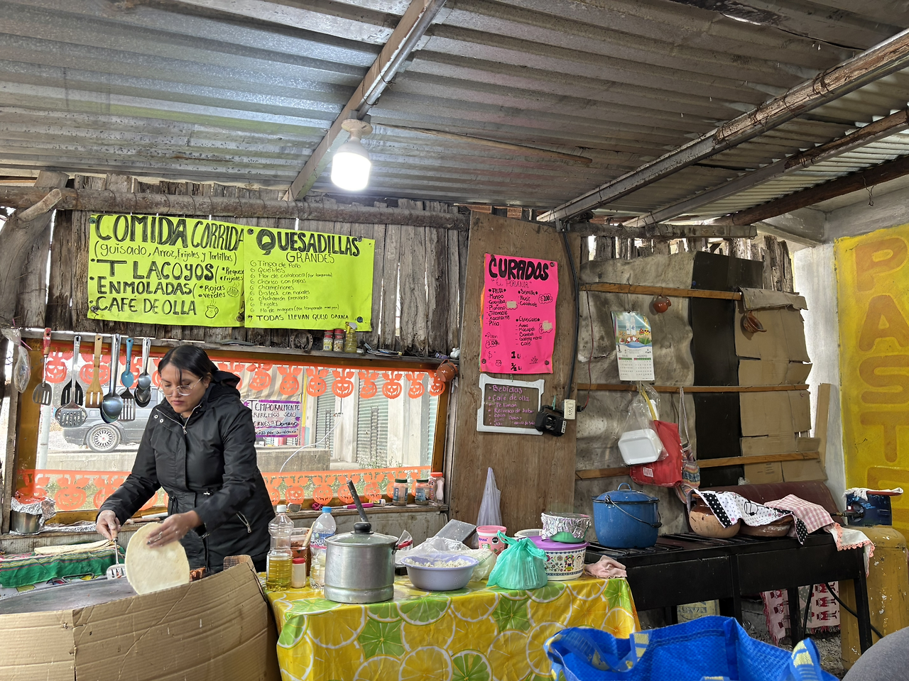 여타 멕시코 음식과 마찬가지로 속재료를 고를 수 있는데, 우리는 여기서 "몰레(Mole)"라는 멕시코 전통 소스를 처음 접하게 되었다. 재료와 배합에 따라 그 종류와 맛이 천차만별이지만, 기본적으로 고추와 초콜릿(!!)이 들어간 장(醬)이라고 한다. 한국인으로서 납득하기 쉽지 않은 조합이라 호불호가 많이 갈리는데, 가이드님의 경우 멕시코 생활을 오래 했지만 아직도 몰레에는 적응을 못하시겠다고 했다.
