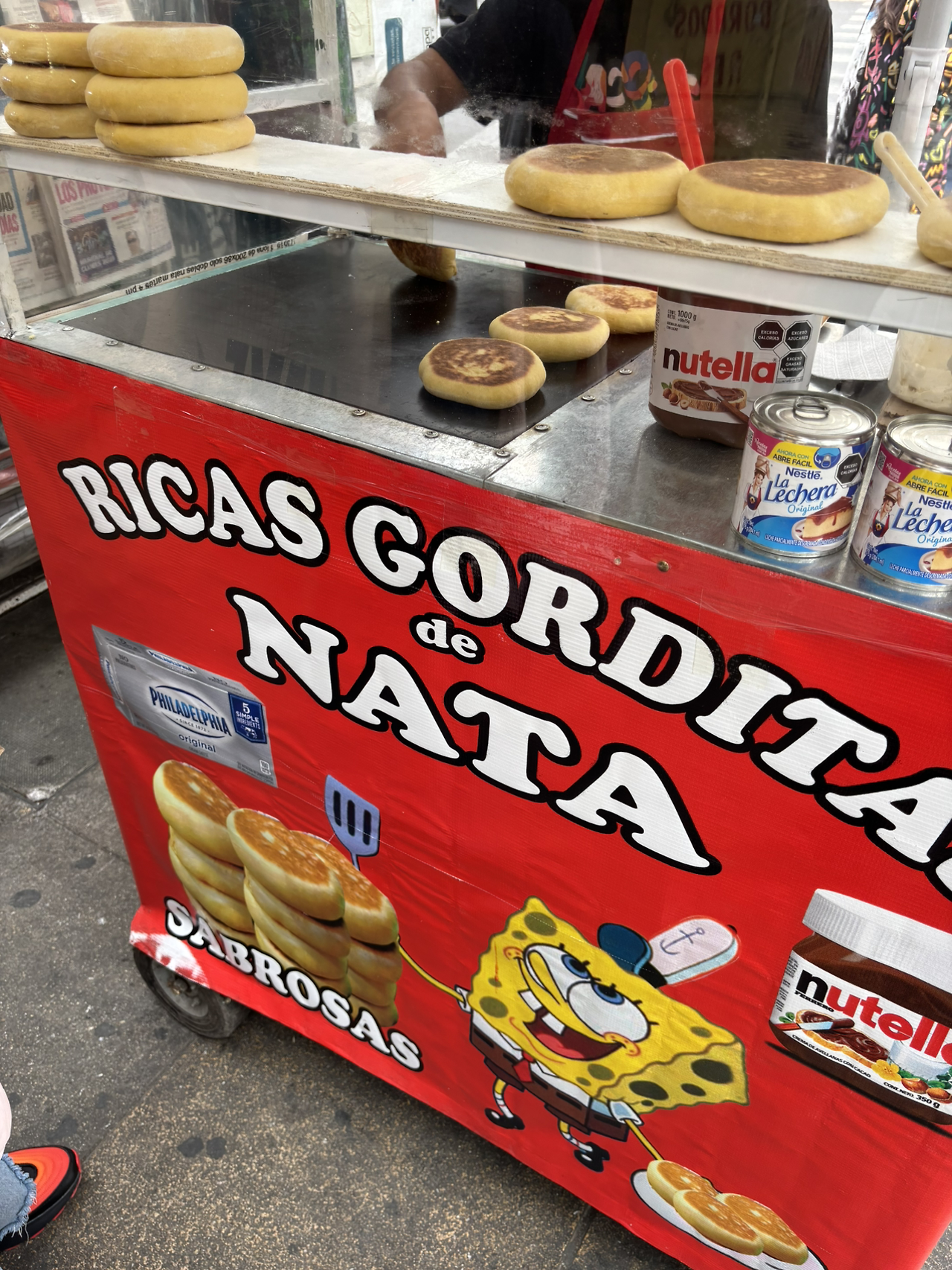또 다른 길거리 간식. "Gordita de Nata"라는 것인데, 안에 연유가 발라져 있는 달달한 팬케이크 같았다. 한 입 베어무니 기분 좋은 달큰함이 확 퍼지면서 단번에 당이 충전되는 느낌이었다. 너무 달아서 몇 입 먹고 또 KO 당하기는 했지만.