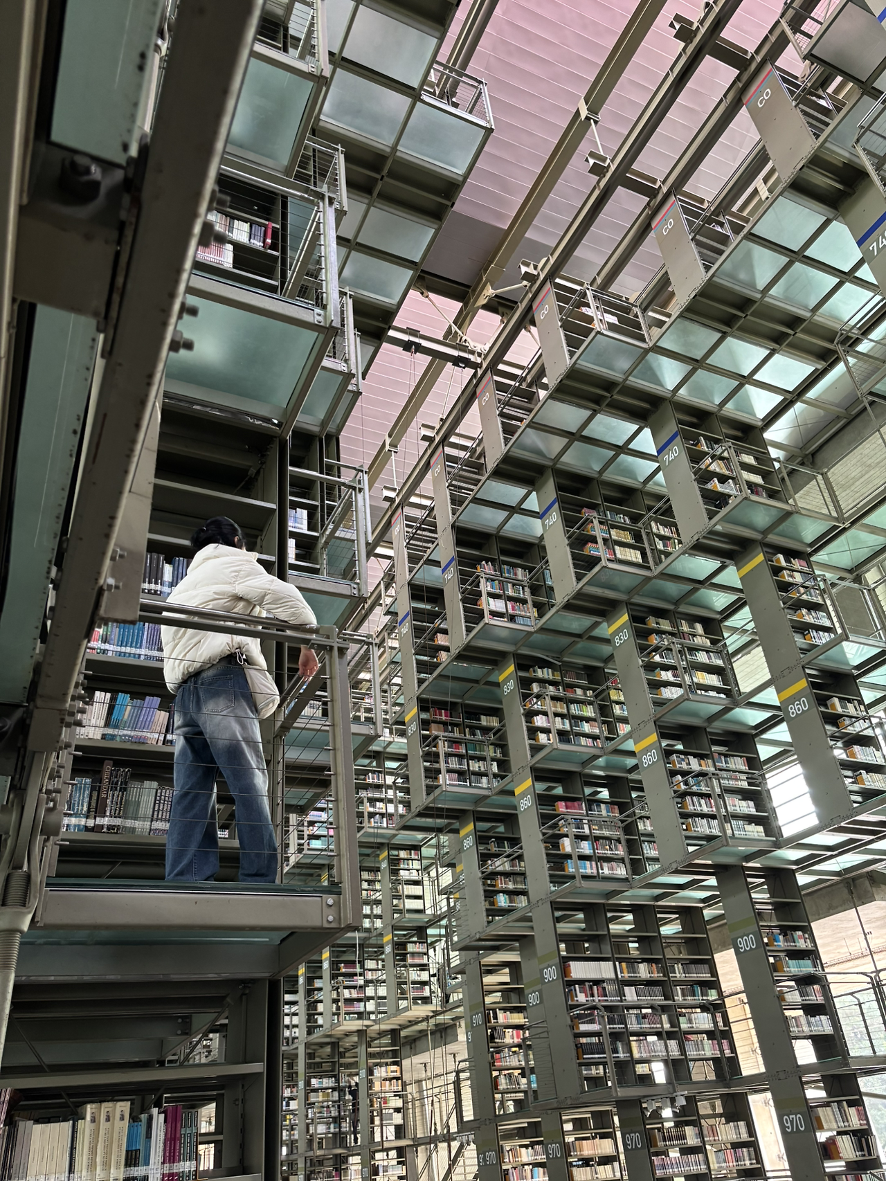 정원을 비롯한 부대시설들도 둘러보았다. PC 좌석은 아래층을 내려다보는 구조로 길게 늘어서 있었고, 공부하거나 책을 읽을 수 있는 테이블도 군데군데 놓여 있었다. 해리포터의 호그와트 도서관 느낌도 났다.