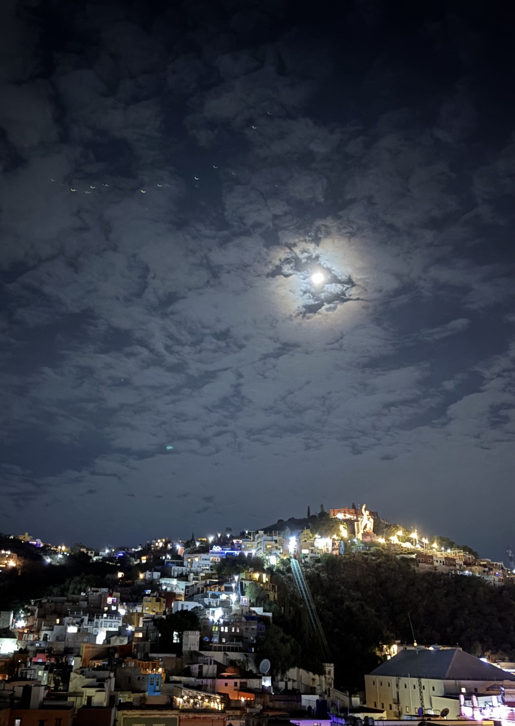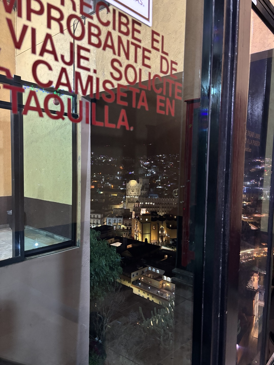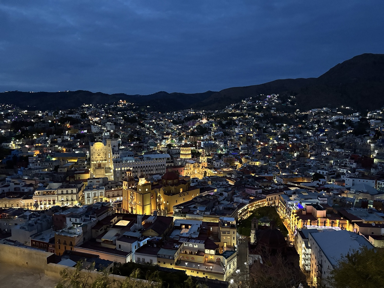 낮에는 흐린 날씨 탓에 다소 밋밋해 보였지만, 밤에 다시 올라왔을 때는 반짝반짝 빛나는 과나후아토 야경이 정말 예뻤다.