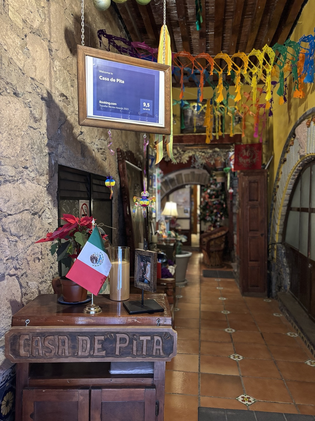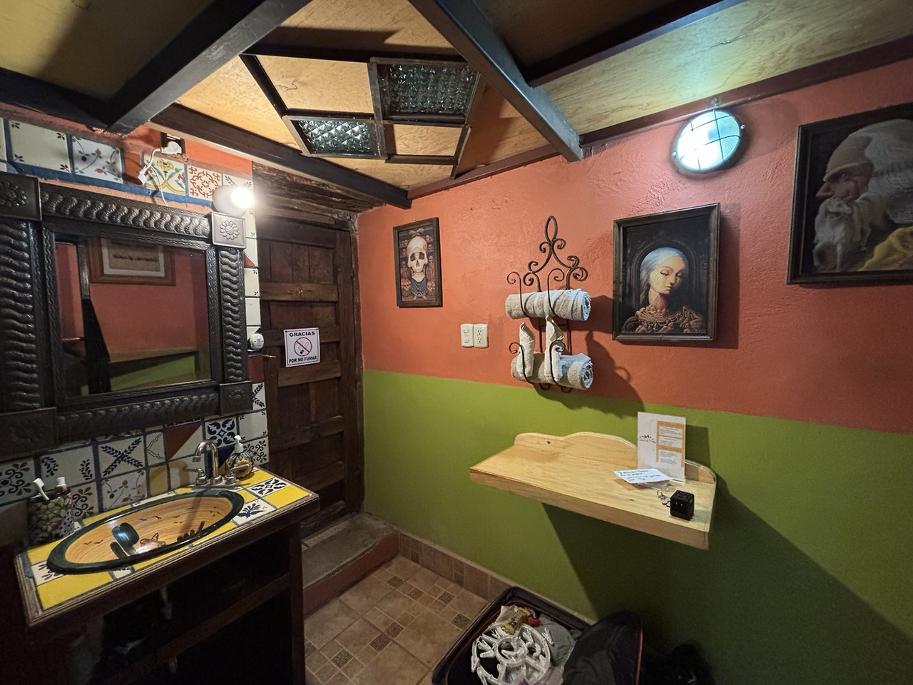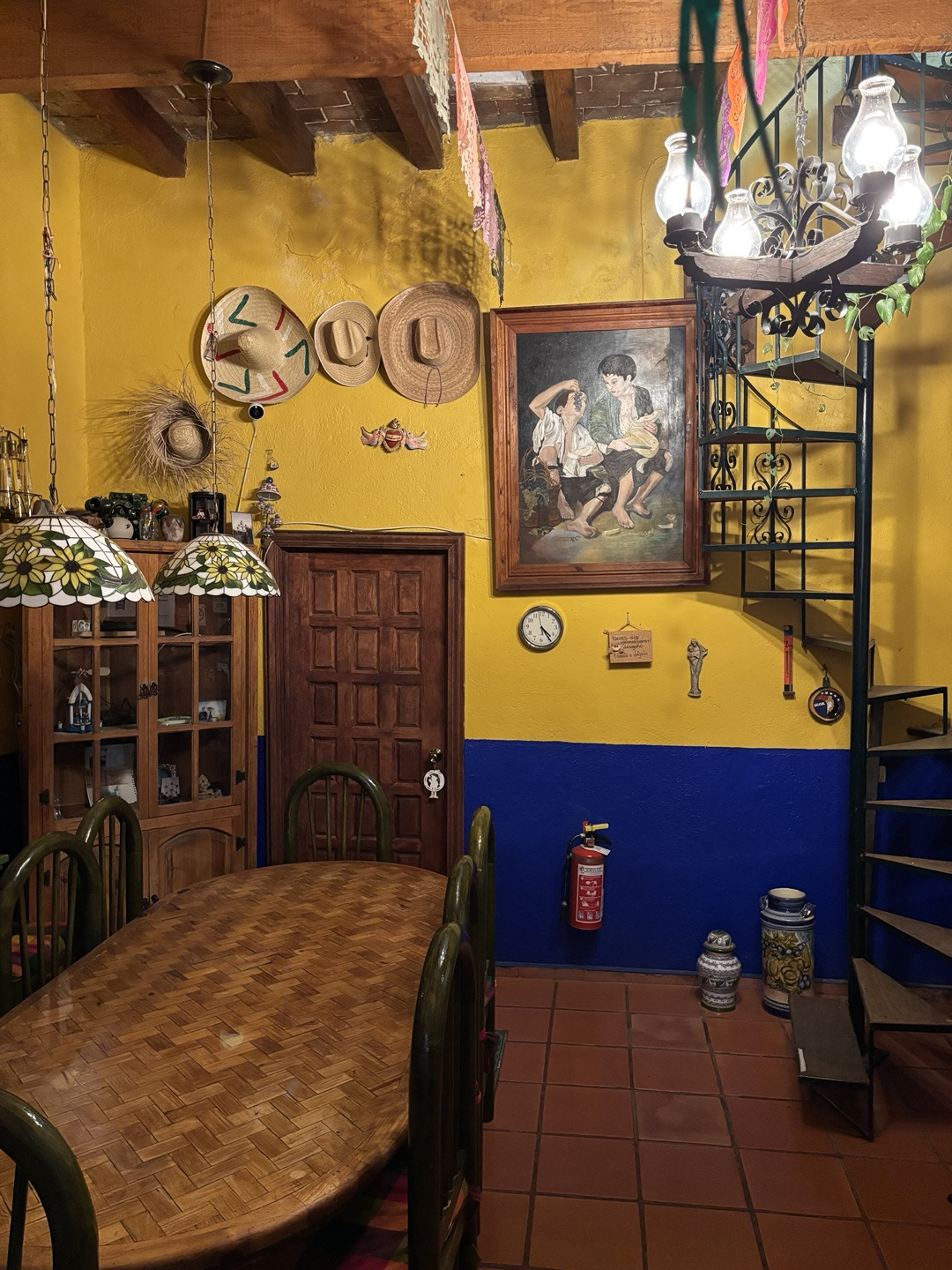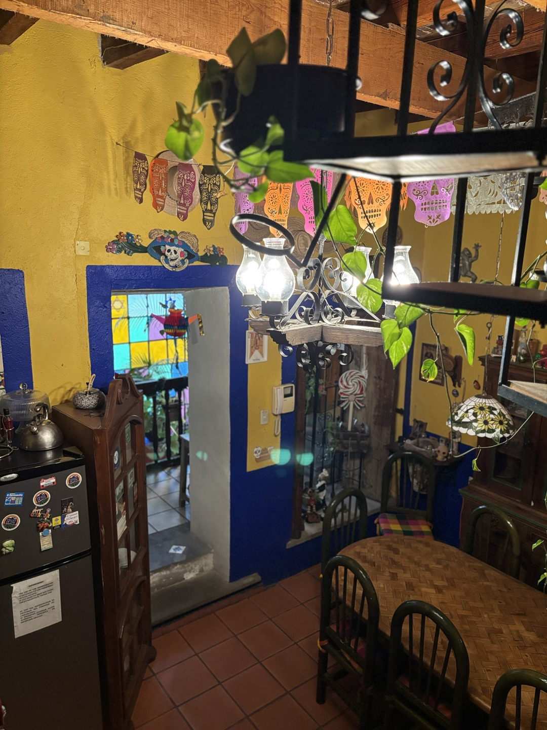 과나후아토에서 우리가 머물게 될 숙소는 멕시코 가정집을 개조한 곳으로, 만약 동화 속 집이 현실에 존재한다면 바로 이런 모습일까 싶을 정도로 아기자기하고 예뻤다. 나중에 알고 보니 1718년에 지어진 건물이었고, 숙소로 운영된 지는 2~30년 정도 된 것 같았다. 그 오랜 세월 동안 차곡차곡 쌓인 정성은, 결국 우리가 마주한 이 섬세한 인테리어로 완성된 셈이다.