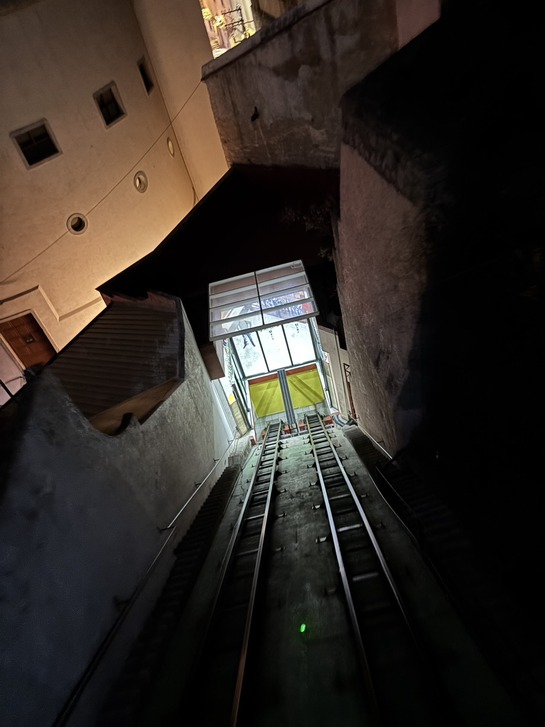 슬슬 체력이 떨어져서, 내려갈 때는 푸니쿨라를 이용했다. 탑승장은 우리가 걸어 올라온 계단 바로 옆에 있었는데, 한 번에 탈 수 있는 인원은 적었지만 운행 간격이 워낙 짧아서 줄이 금방 빠졌다. 마침 우리 바로 앞에서 즐이 끊겨서, 푸니쿨라 안에서 명당을 차지할 수 있었다.