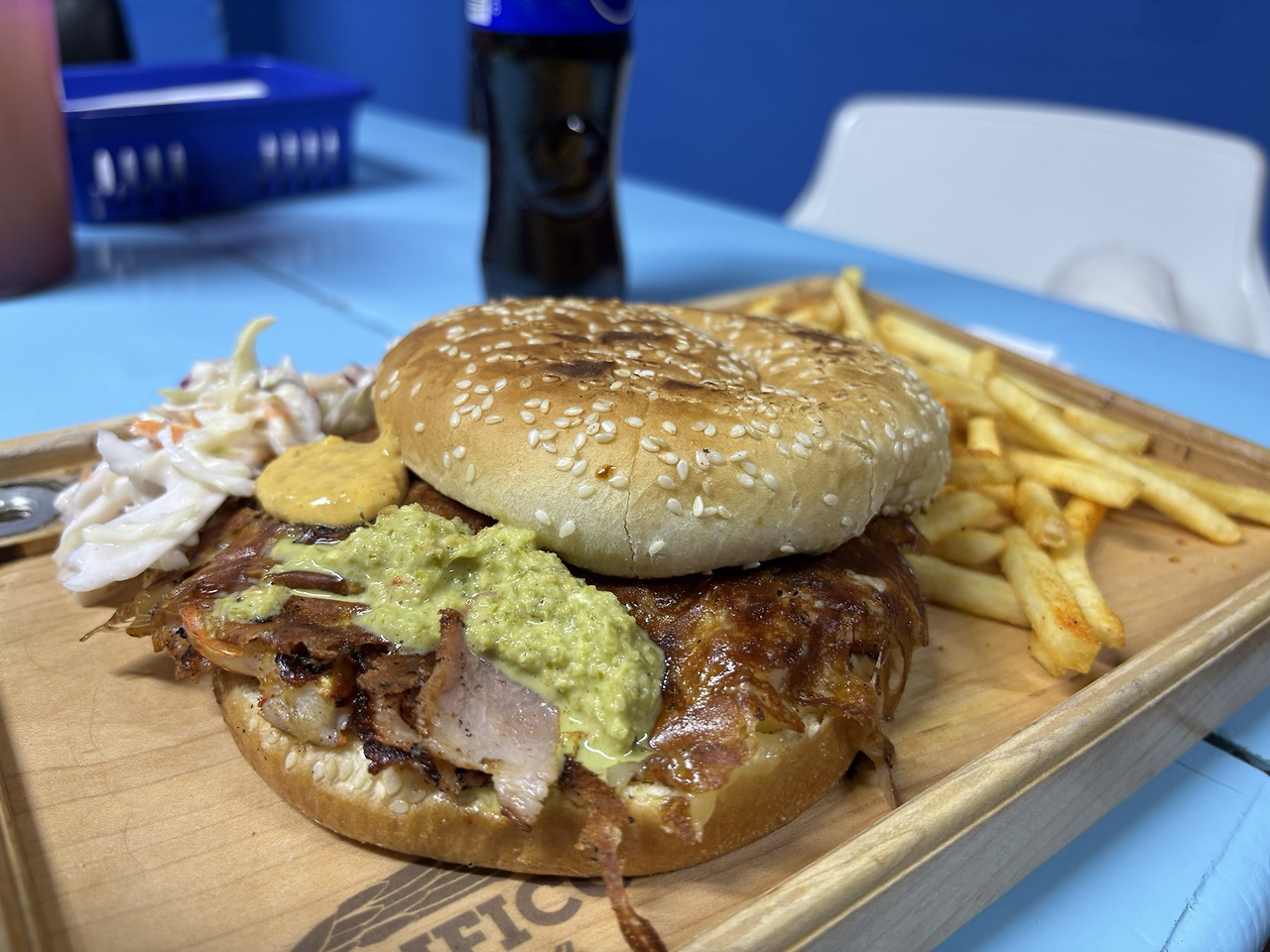 우리는 흰살생선과 새우튀김이 포함된 콤보메뉴 하나와, ”La Pacifico “라는, 여러 종류의 해산물과 베이컨이 들어간 햄버거를 함께 주문했다. 손님이 많지는 않았지만 나오는 데까지 다소 시간이 걸렸다.