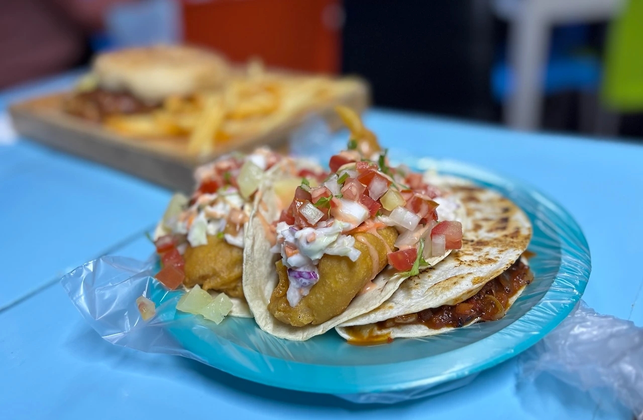 드디어 나온 우리의 메뉴. 기본적으로 타코는 또띠아와 메인 재료만 제공되고, 셀프바에서 원하는 토핑과 소스를 추가할 수 있다. 셀프바 앞에서 직원분이 가장 잘 어울리는 조합을 알려주시니, 그대로 따라 하면 된다.