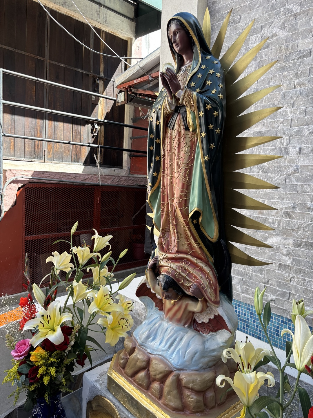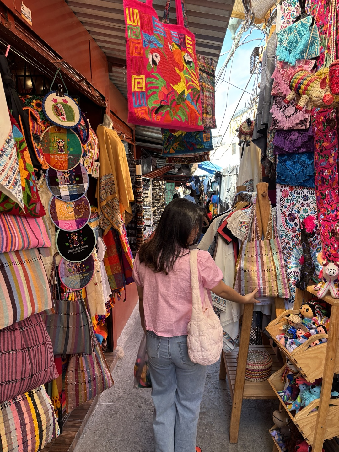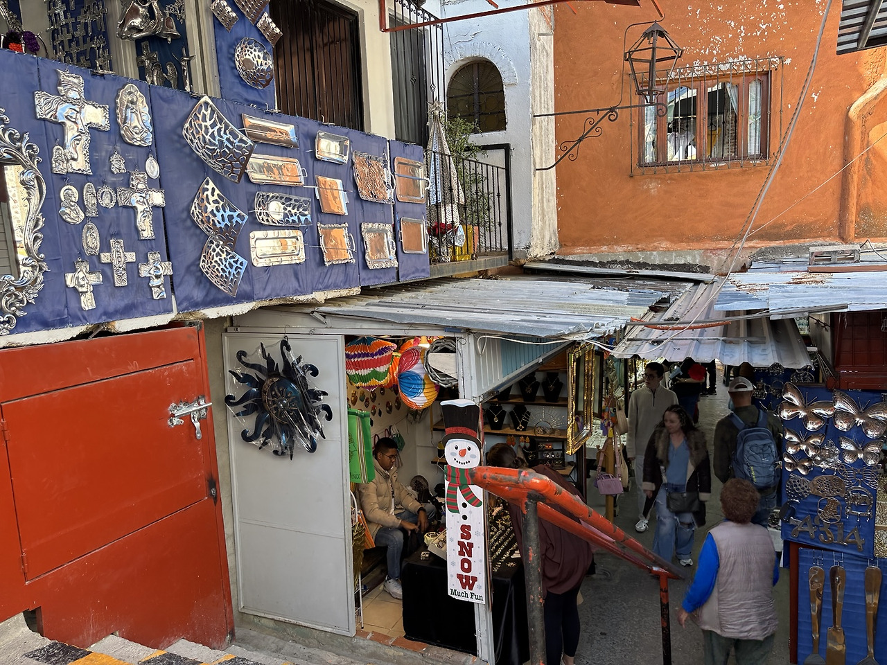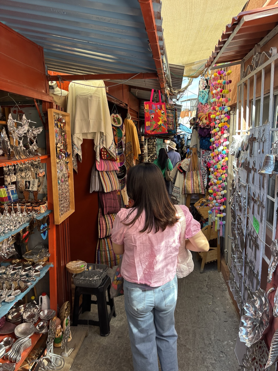 크지는 않았지만 작은 길목 양옆으로 여러 가게들이 빼곡하게 입점해 있었다. 수공예시장 중간에 성모상과 멕시코 전통의상을 입은 동상이 있는 작은 공터가 있었고, 간단한 음식을 파는 포장마차도 있었다.