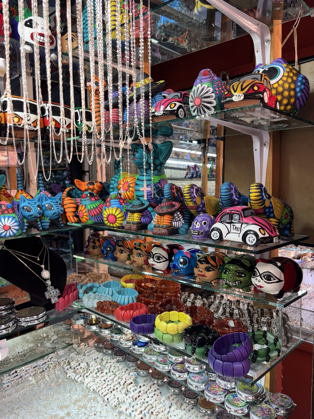 멕시코 여행을 하다 보니 마그넷이나 컵처럼 어디서나 흔히 파는 기념품도 디테일한 디자인이나 그림은 가게마다 달라서, 다음에 산답시고 그냥 지나쳤다가 나중에 동일한 물건을 못 찾은 경우가 꽤 있었다. 그런 점에서 이곳에서 마음에 든 해골 거울을 바로 구입한 건 꽤나 뿌듯한 선택이었다.