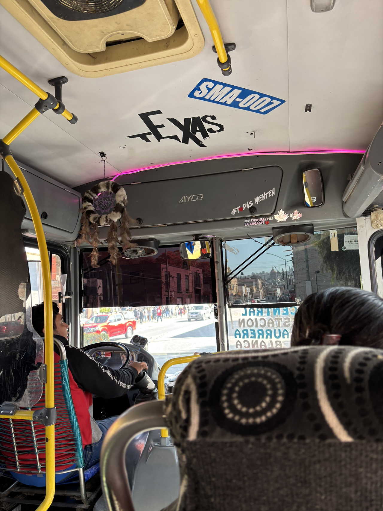 소도시답게 터미널 안에는 개들이 자유롭게 돌아다니고 있었고, 나가자마자 바로 보이는 귀여운 버스표지판이 앞에서 버스를 탈 수 있었다. 이때 처음으로 멕시코 버스를 타 봤는데, 굉장히 낡고 덜컹거리는 것이 이 도시 분위기에 나름 잘 어울렸다.