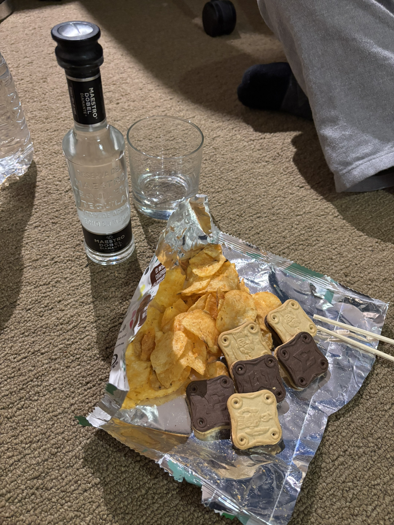 마지막 밤을 그냥 보낼 수는 없다. 선물용 메즈깔을 구입하면서 이 날 밤 마실 작은 데낄라 두 병을 같이 데려왔다. 하나는 리쿼샵에서 눈에 보이는 대로 고른 이름 모를 데낄라, 다른 하나는 한국인 추천 리스트에도 있는 "마에스트로 도벨(Maestro Dobel)".