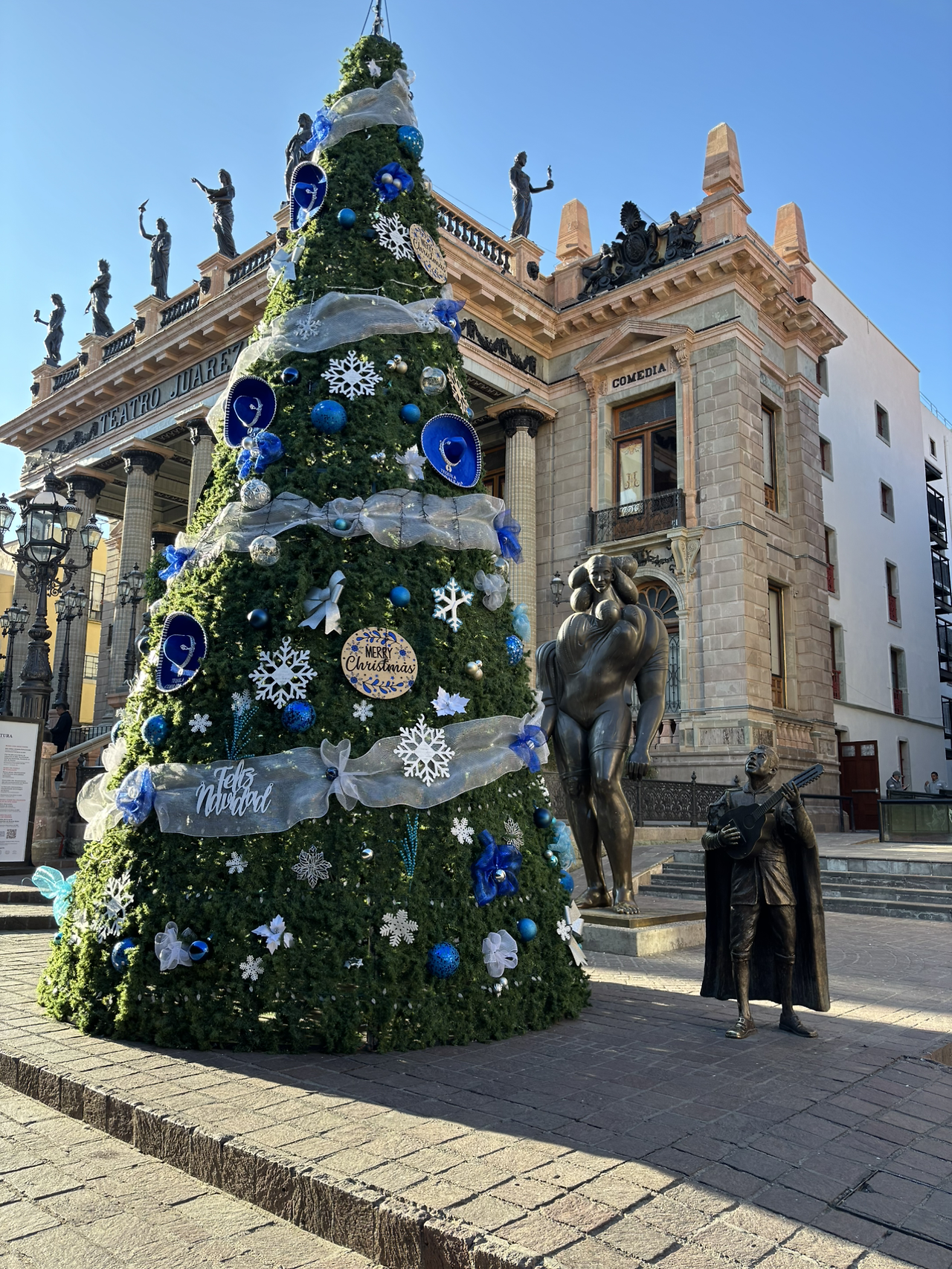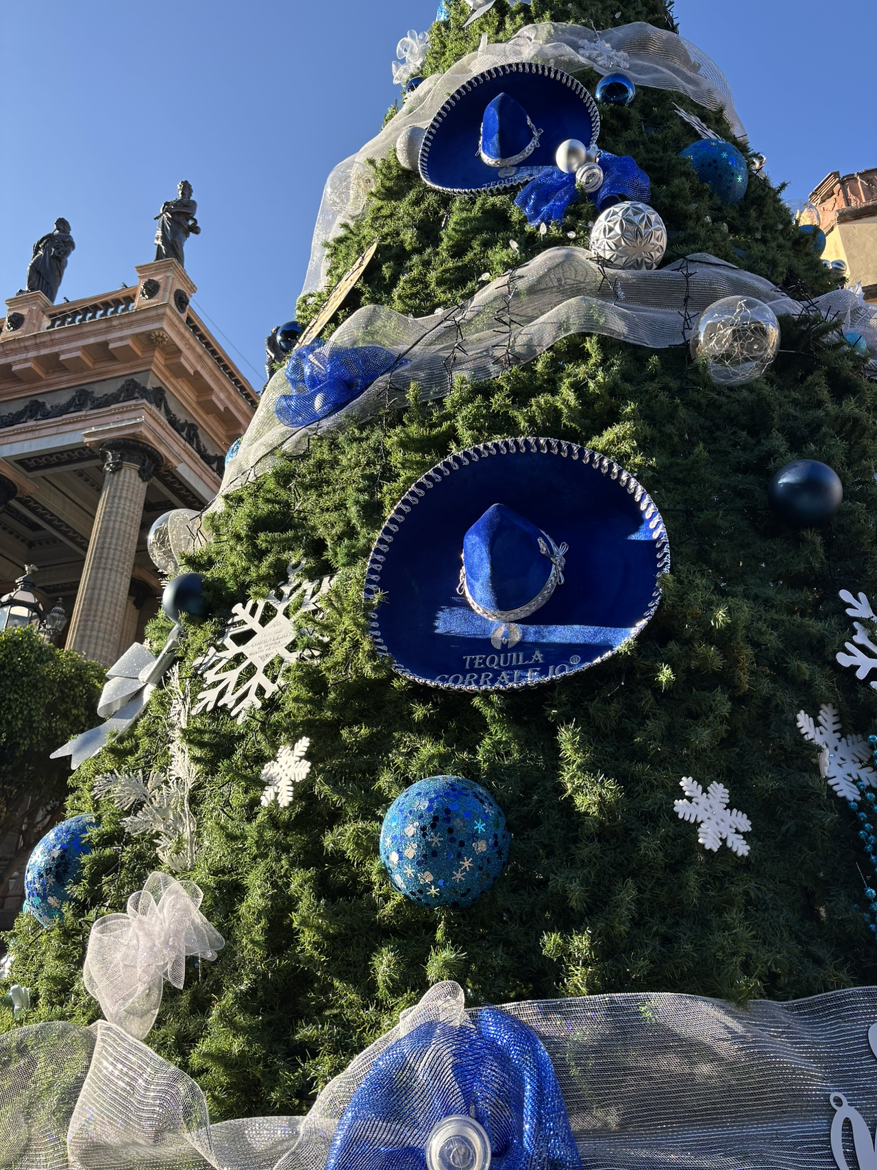 우니온 극장 앞 트리에 걸린 모자 모양 장식물을 자세히 보니 ‘TEQUILLA CORRALEJO’라고 적혀 있었다. 역시 멕시코 감성.