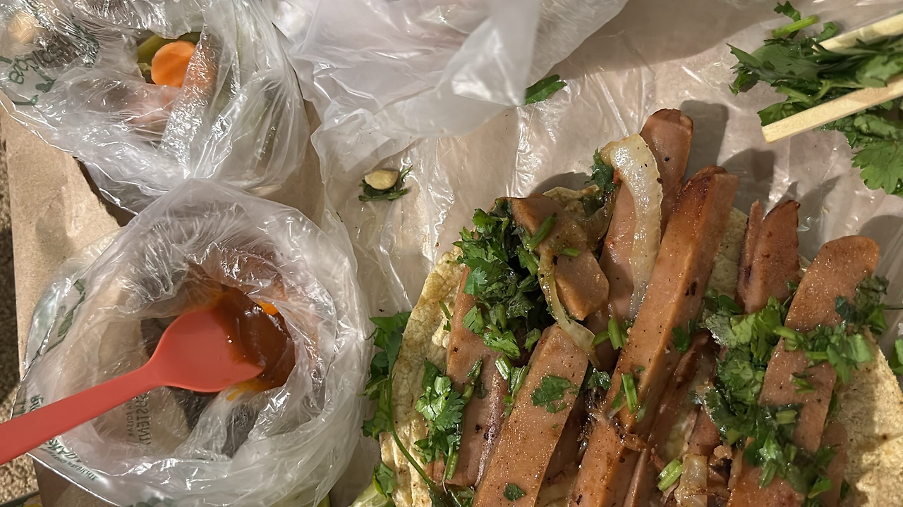 가져오는데 시간이 좀 걸렸음에도 모두 따끈따끈하고 맛있었다. 특히 비건용 햄이나 고기 모두 진짜 육류와 구분이 안 될 정도였다. 역시 멕시코 음식은 길거리 트럭이라는 경험치 추가다.