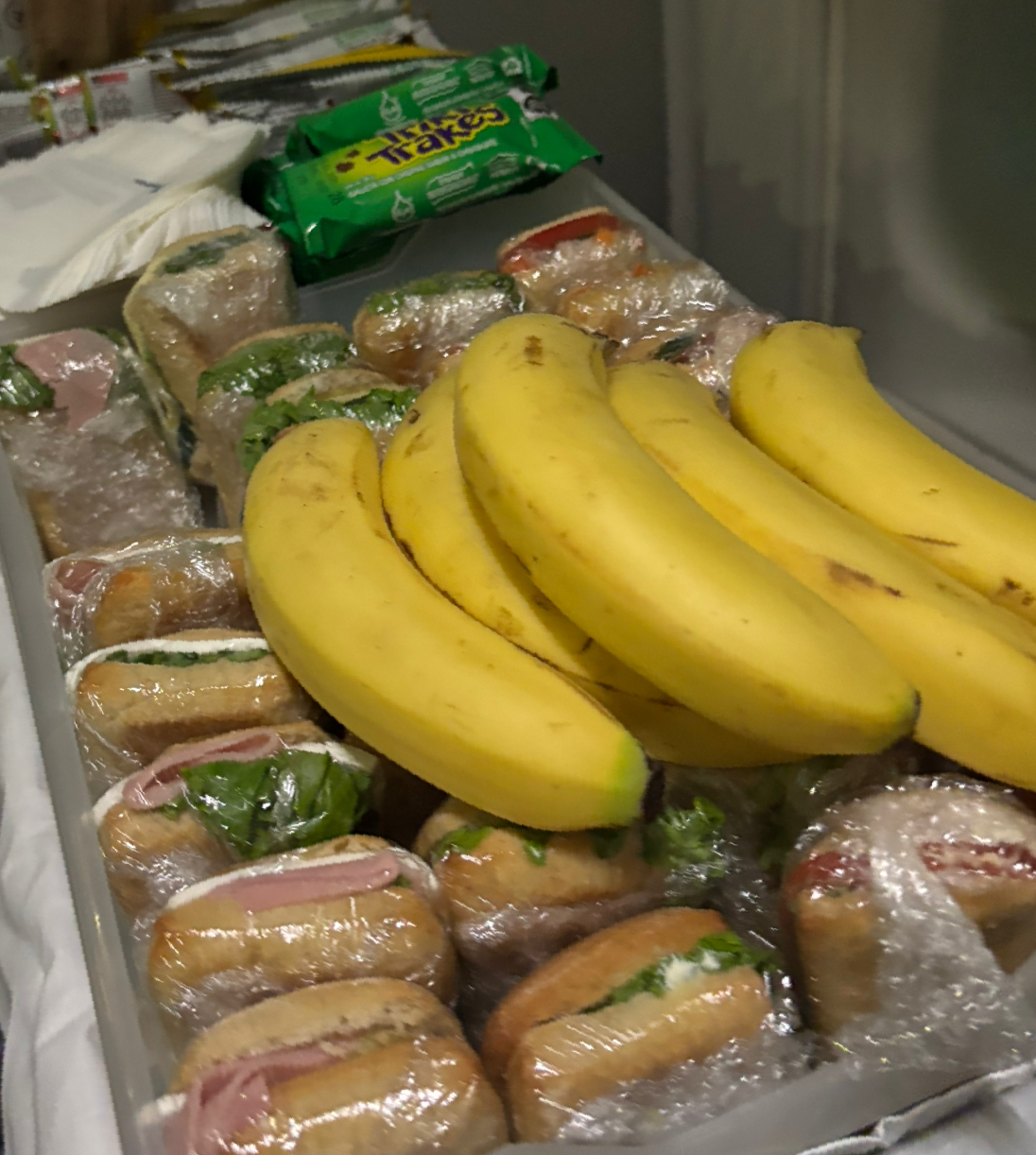 아에로멕시코는 특별 기내식 선택이 가능했다. 궁금한 마음에 돌아오는 편으로 기껏 신청해 놓고는, 자느라 첫 번째 기내식을 놓쳐버렸다. 일어나니 배가 출출해서 큰일 났다 싶었는데, 스낵바에 기내식 급으로 훌륭한 간식들이 잔뜩 구비되어 있었다. 미니 샌드위치 종류가 자그마치 3종류이고, 그중 2개를 먹어봤는데 모두 맛있었다.