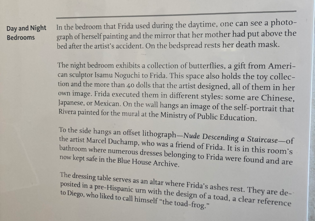 Day and Night Bedrooms. 거동이 불편했던 그녀는 침대에 누워 천장에 있는 거울을 보며 그림을 그렸고, 그런 이유로 프리다칼로의 작품 중에는 자화상이 많다.
