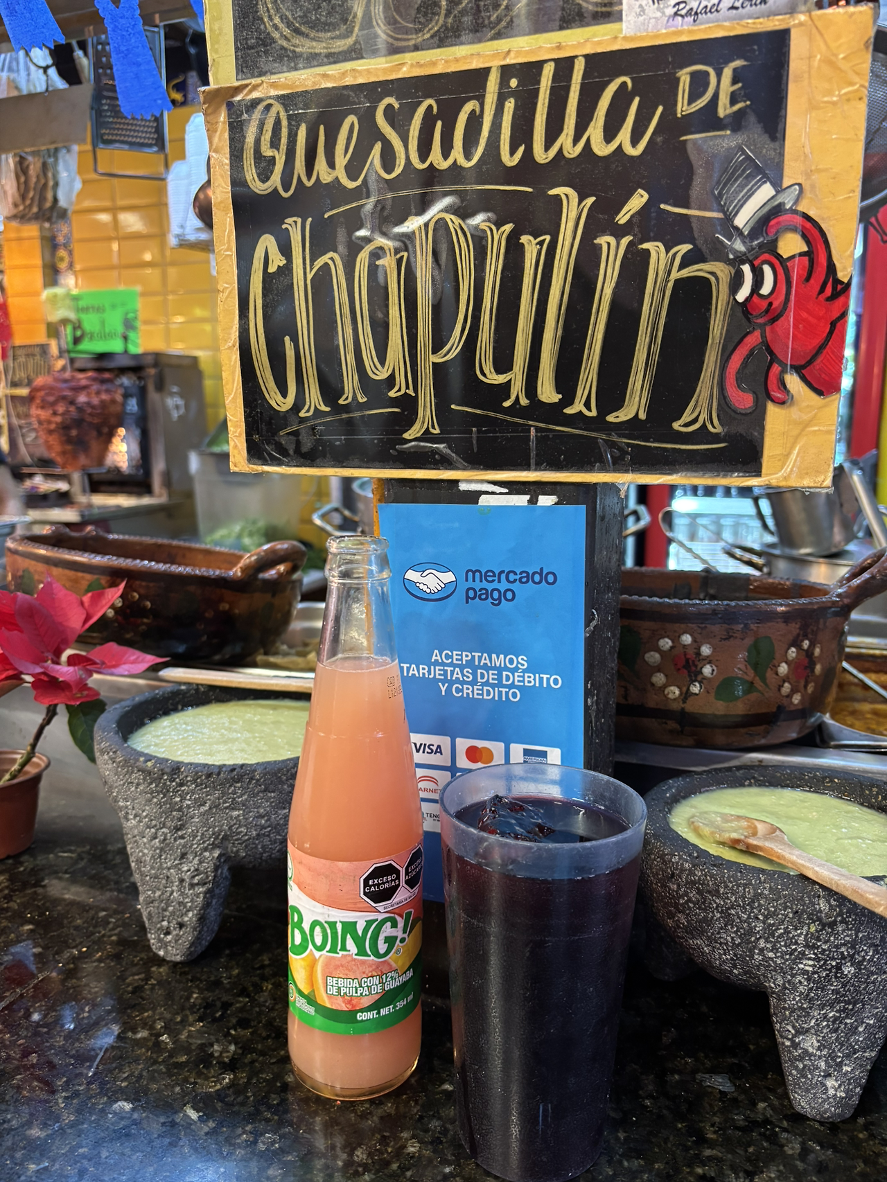 저렴하고 종류가 많아 ‘기념품 천국’이라는 후기가 무색하게, 코요아칸 시장에서는 생각보다 살만한 것이 별로 없었다. 대신 이달고 시장처럼 식당들이 옹기종기 많아서, 그중 한 곳에 자리를 잡았다.